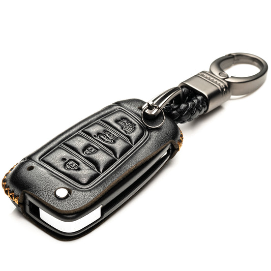 Vitodeco Genuine Leather Flip Key Fob Case Cover Protector Compatible with KIA Soul, K5, Sportage, Forte | New Emblem | 2021-2026 Models | 4-Button