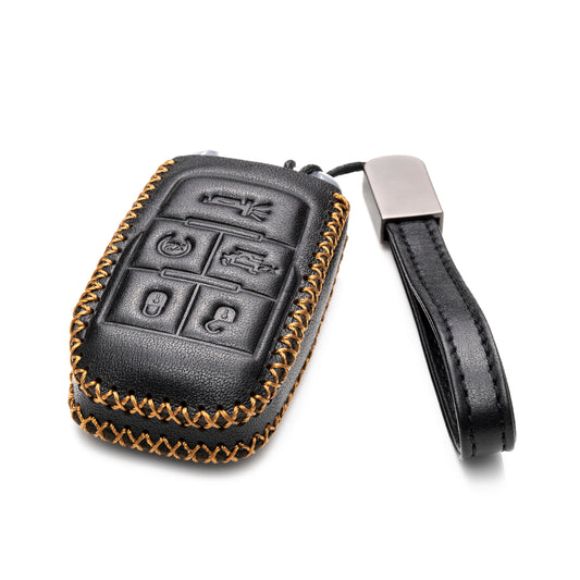 Vitodeco Genuine Leather Keyless Entry Remote Control Smart Key Case Cover with Leather Key Strap Compatible for RAM 2500, 3500, 4500, 5500 2019 - 2026, 5-Button