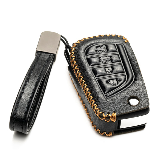 Vitodeco Genuine Leather Key Remote Fob Case Cover Protector Compatible for Honda Civic, Fit, Accord, Pilot, CR-V (2013 - 2017 Models) - 4-Button