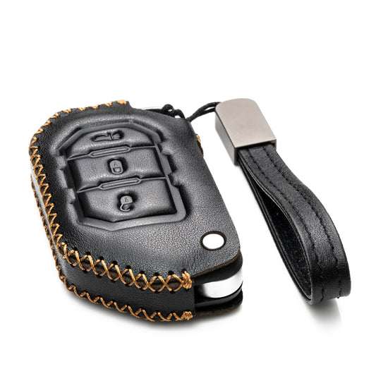 Vitodeco Genuine Leather Flip Key Fob Case Cover Protector Compatible for Jeep Wrangler, Gladiator (2018 - 2026 Models) - 3 Buttons