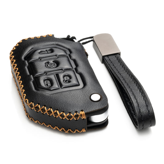 Vitodeco Genuine Leather Key Fob Case Cover Compatible for GMC Sierra, Canyon, Chevy Silverado 1500, Tahoe, Colorado, Suburban (2014 - 2022 Models) - 4-Button