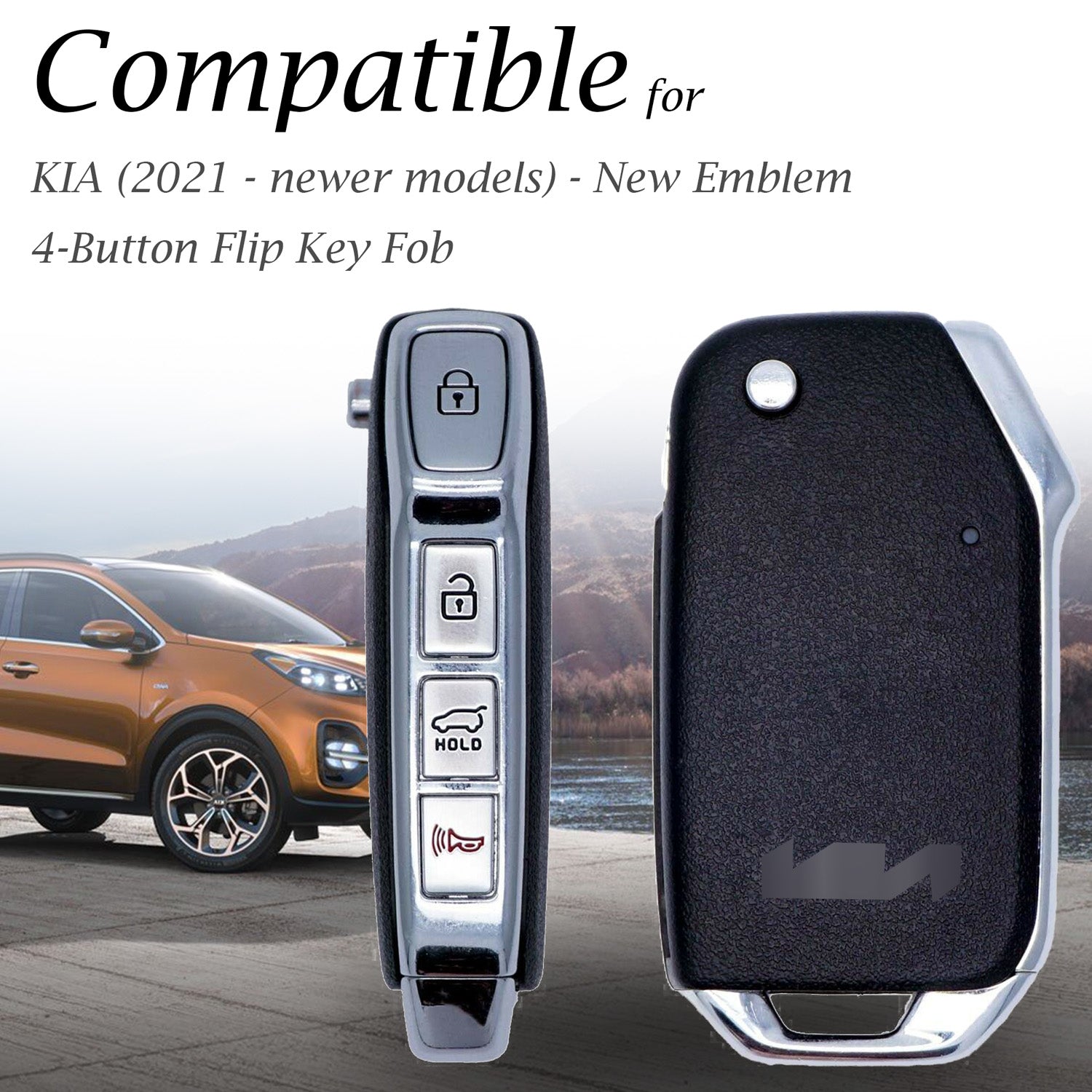Compatible for KIA Soul, K5, Sportage, Forte (2021 - 2026 models) with 4-Button Flip key fob - New Emblem - (Note: Only for flip key fob). Please compare picture with your key fob before purchase.