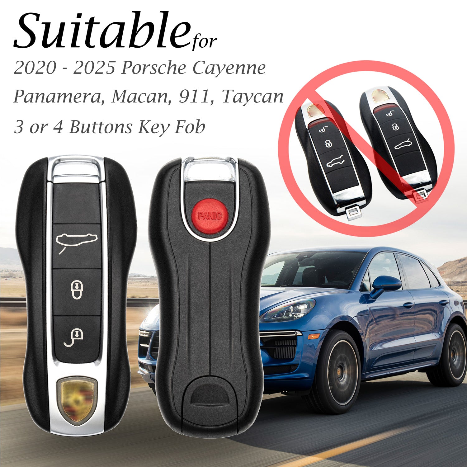 Compatible for Porsche Cayenne, Macan, Panamera, 718, 911, Taycan 2020 - 2026 with 3-Button smart key fob (Note: NOT FOR OLD VERSION KEY FOB). Please compare picture with your key fob before purchase.