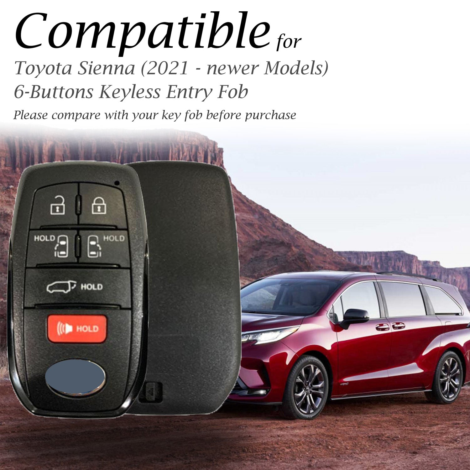 Compatible for Toyota Sienna (2021- 2026) with 6-button smart key fob (Note: Only for Push Button Start). Please compare the picture with your key fob before purchase.