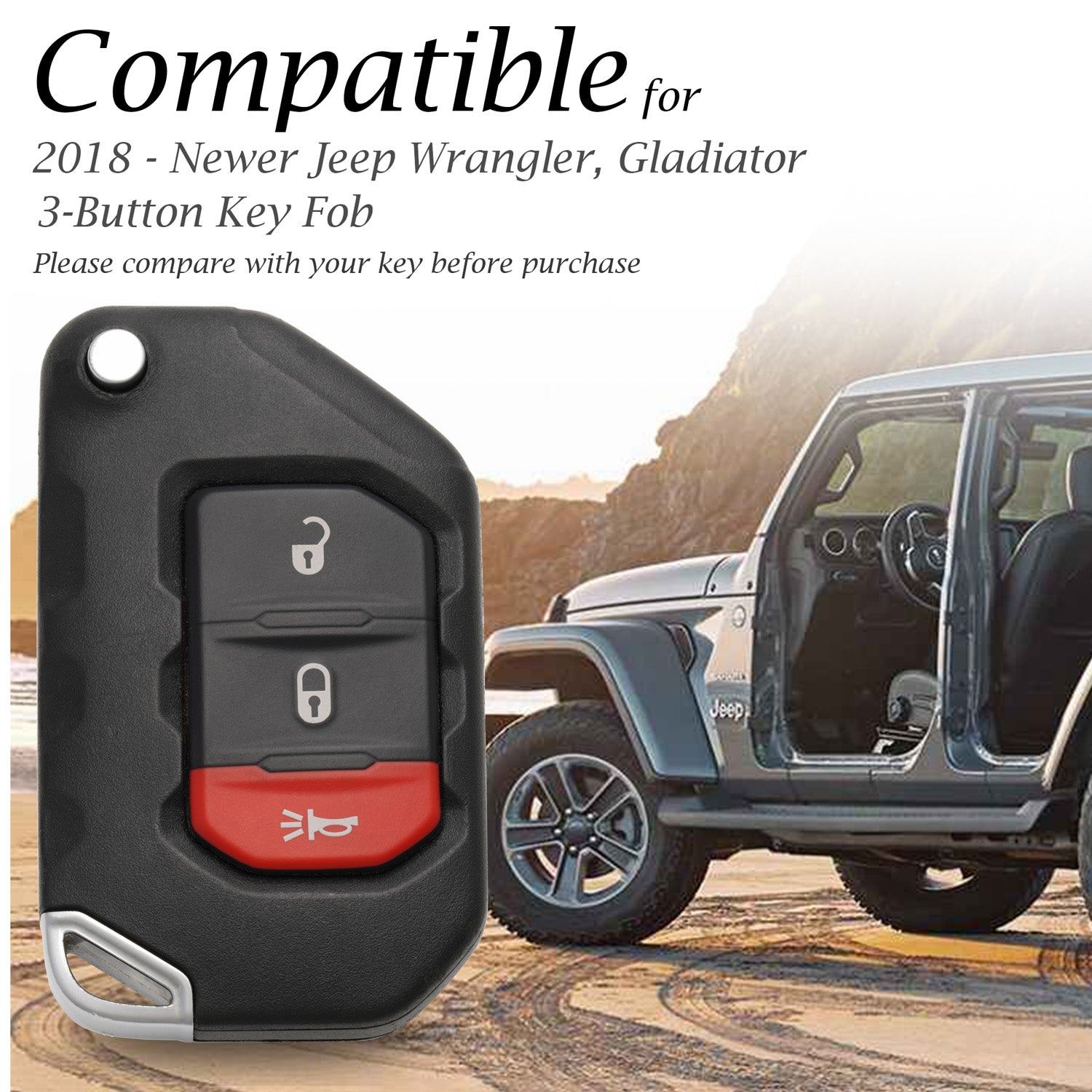 Compatible for Jeep Wrangler, Gladiator (2018 - 2026 models) with 3 buttons FLIP key fob. Please compare picture with your key fob before purchase.